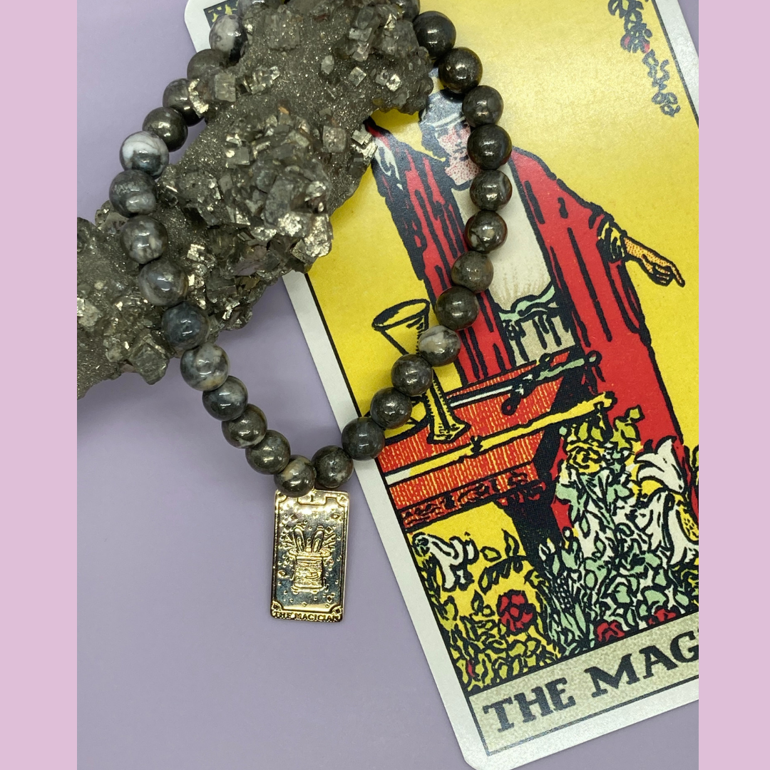 All bracelets are handmade with love and intention. All tarot cards charms are gold plated brass. All gemstone beads are authentic crystals cut and polished into beads. To keep your bracelet in the best shape, keep away from moisture, do not wear it in the shower or near water, and maintain it with lots of love and care.